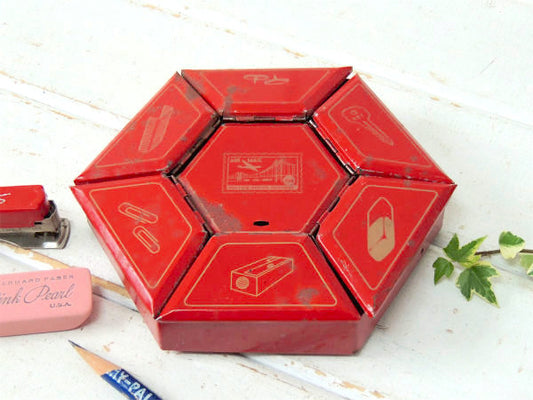 ステーショナリー レッドカラー ビンテージ 卓上 オーガナイザー 小物入れ ティン製