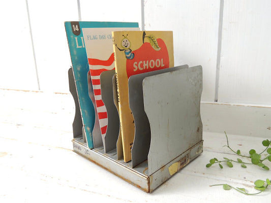 工業系・ウッドトーン スモールサイズ・メタル製・ヴィンテージ・書類スタンド ブックスタンド USA