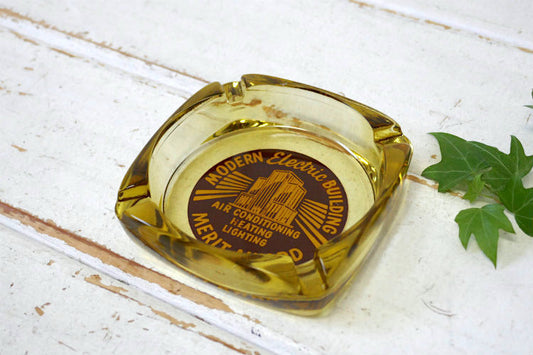 MODERN Electric BUILDING MERIT AWARD アンバーガラス スクエア型 ヴィンテージ 灰皿 アシュトレイ USA