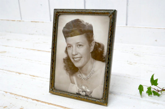 モノクロ 写真入り ゴールドトーン アンティーク 卓上 フォトフレーム 額縁 写真立て USA