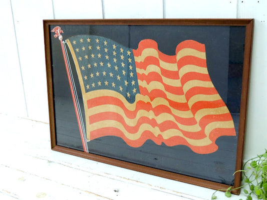 1912s~ 48星・波打ち 星条旗 アンティーク・アメリカ 国旗・イーグル・アートフレーム・USA