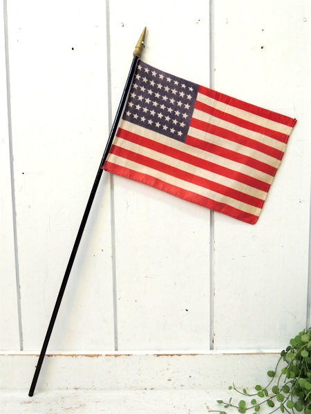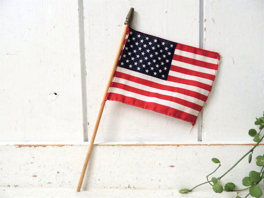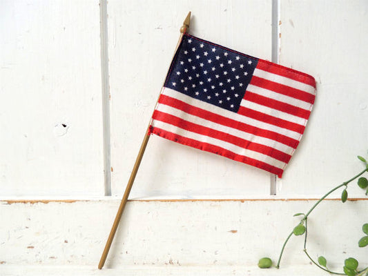星条旗・50州 アメリカンフラッグ・木製ポール付き・ヴィンテージ・旗・USA・インテリア・看板