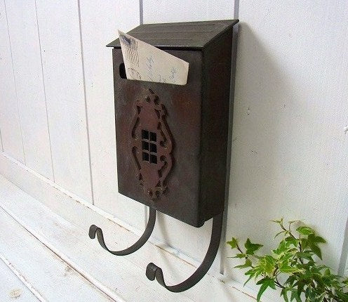 黒色のアイアン製・アンティーク・メールボックス/郵便受け/ポスト USA