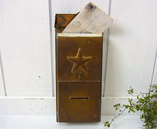星モチーフ・真鍮製・アンティーク・メールボックス/郵便受け/ポスト USA