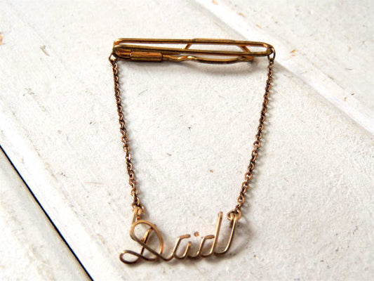 【Dad・筆記体】アンティーク・タイピン・父の日・ゴールドトーン・アクセサリー