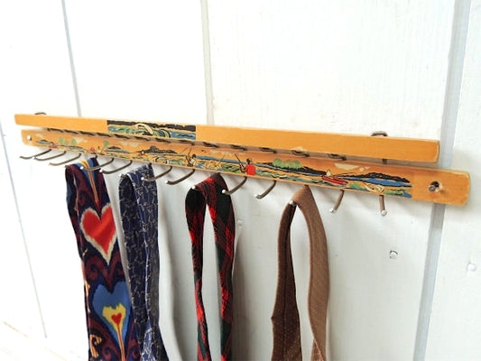 フライフィッシング ハンドペイント・折り畳み式・木製・ビンテージ・ネクタイホルダー・ハンガー USA