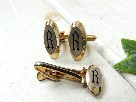 R・ヴィンテージ・HICKOK イニシャル・ジュエリー・タイピン&カフスボタンセット・アクセサリー