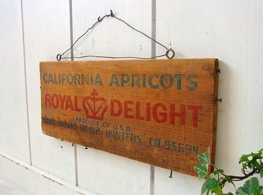 アプリコット・木箱 ビンテージ・ウッドプレート 木製サイン・USA・看板