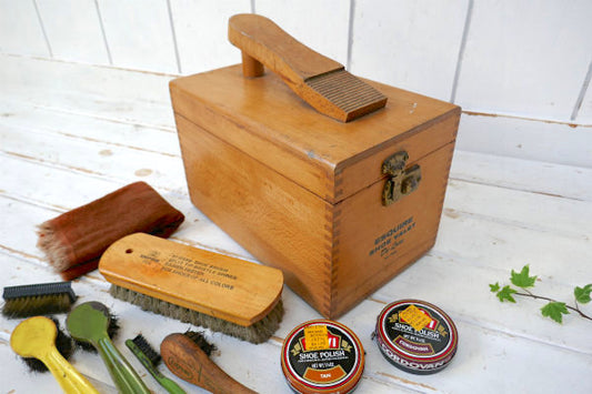 ESQUIRE SHOE 木製 脚付き ヴィンテージ 靴磨きボックス シューケアボックス 道具入れ USA シューシャイン