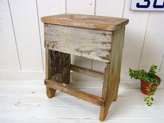 シャビーな木製・アンティーク・スツール/踏み台/ローチェア USA