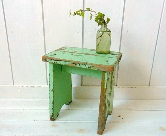 若草色の小さなアンティーク・木製スツール/踏み台 USA