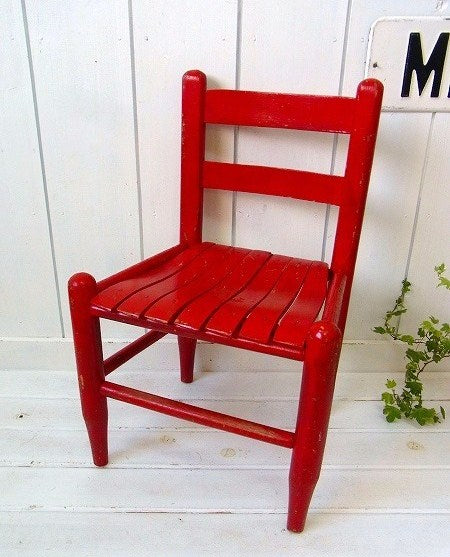 赤色の木製・アンティーク・子供イス/チャイルドチェア/椅子/ローチェア USA