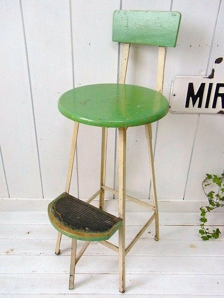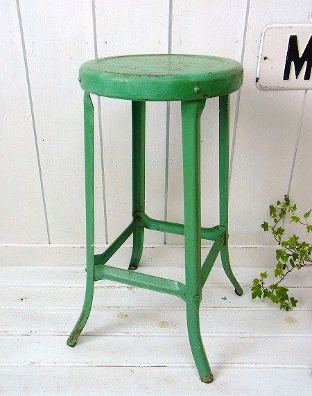 グリーンのスチール製・ヴィンテージ・スツール/チェア/ラウンドスツール USA