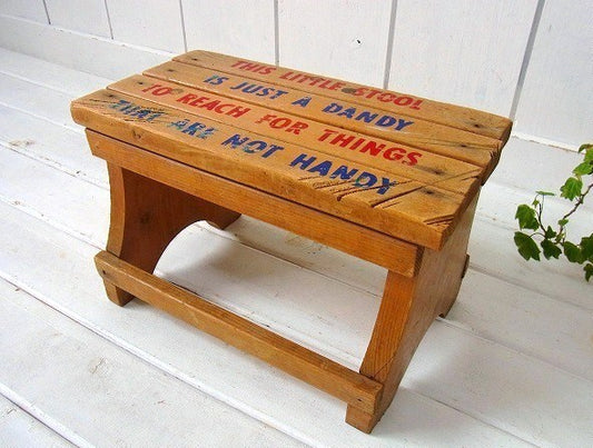 英文字入り・小さなアンティーク・木製スツール/踏み台/子供イス USA