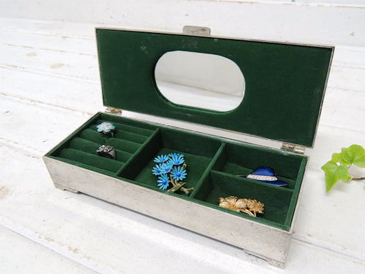 フラワーモチーフ・シルバー 脚付き・アンティーク・ジュエリーボックス・宝石箱・アクセサリーケース