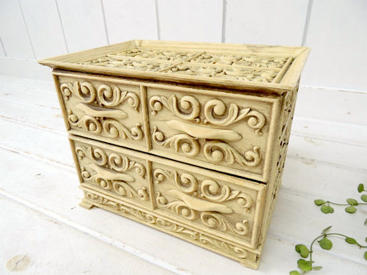ユリ・紋章モチーフ 白色・ヴィンテージ・ジュエリーケース・宝石箱・ジュエリーボックス