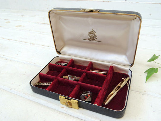ブラック×レッドカラー メンズ ヴィンテージ・ジュエリーケース 宝石箱 ジュエリーボックス タイピン
