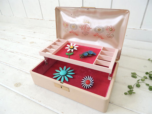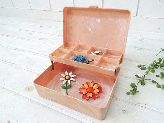 Farrington サーモンピンク 2段式 ヴィンテージ ジュエリーボックス ケース 宝石箱