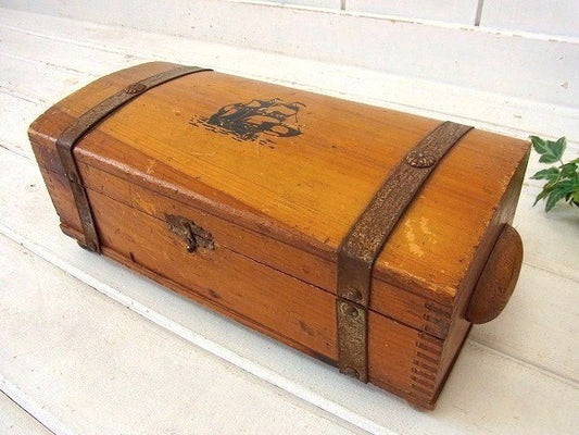 海賊の宝箱・小さなアンティーク・ウッドボックス/木箱/ジュエリーボックス USA