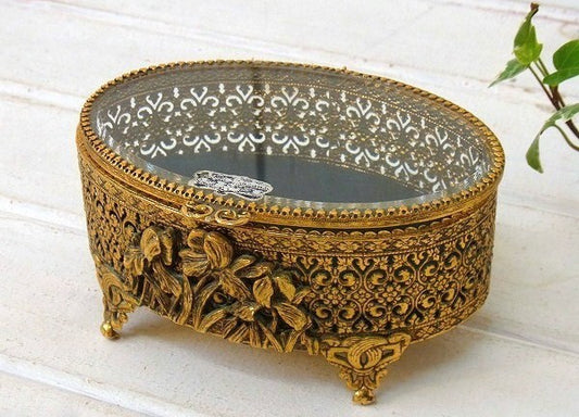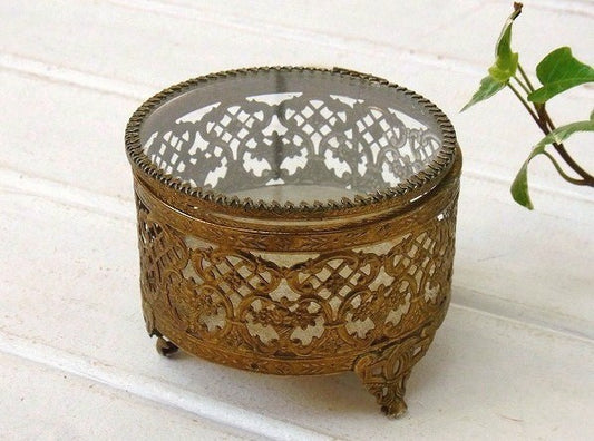 脚付き・アンティーク・ジュエリーボックス/宝石箱/アクセサリーケース USA