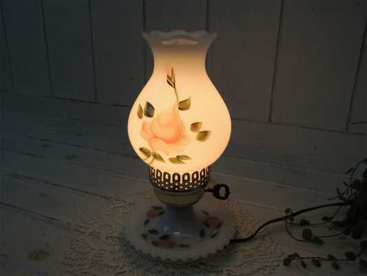 ミルクガラス・ハンドペイント・花柄・アンティーク・テーブルランプ・デスクランプ・照明 USA