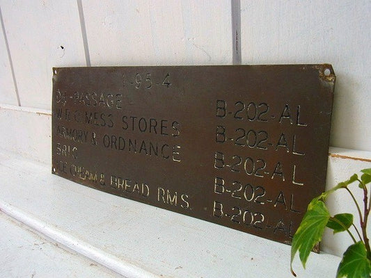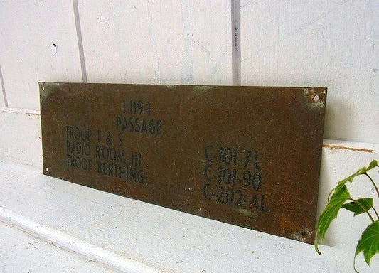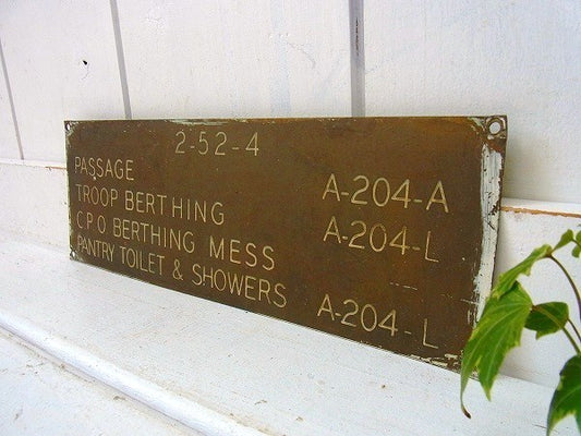 アメリカ海軍・真鍮製・40’sアンティーク・船内プレート/標示プレート USA