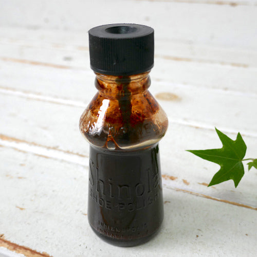 Shinola SHOE POLISH 40's ヴィンテージ シューポリッシュ シューシャイン 靴磨き ガラス容器 ボトル 瓶 ブラウン USA エンボス