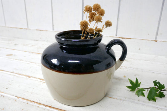 US ストーンウェア ブラウン ワンハンドル ヴィンテージ ビーンポット 豆料理 容器 レトロ 花瓶