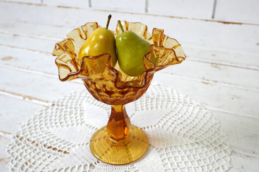 アンバーガラス USA エレガントなデザイン・ヴィンテージ・コンポート・食器・脚付き・皿・トレイ