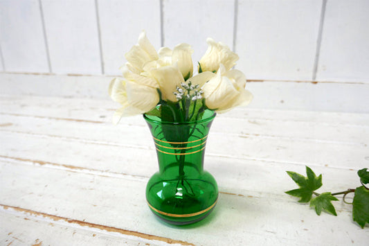 エメラルドグリーン×ゴールド USA・ガラス・ヴィンテージ・フラワーベース 花瓶