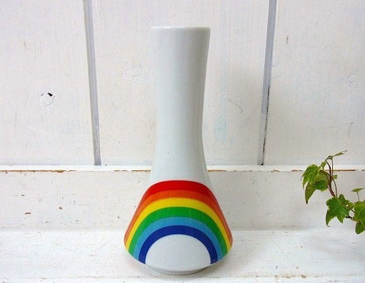 レインボー柄・陶器製・ヴィンテージ・フラワーベース/花瓶/花器