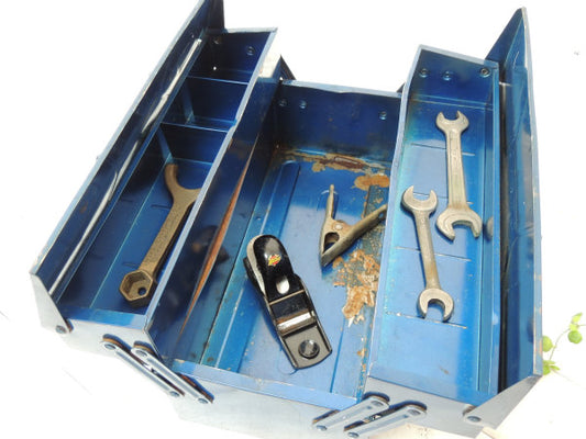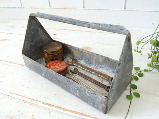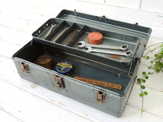 USA ブルーグレー 仕切り ヴィンテージ 木箱 ウッドボックス 工具箱 ツールボックス ガレージ