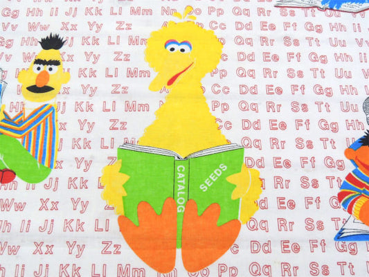 セサミストリートの仲間たち アルファベット&読書柄 ヴィンテージ ユーズドシーツ ハーフシーツ(1/2) USA