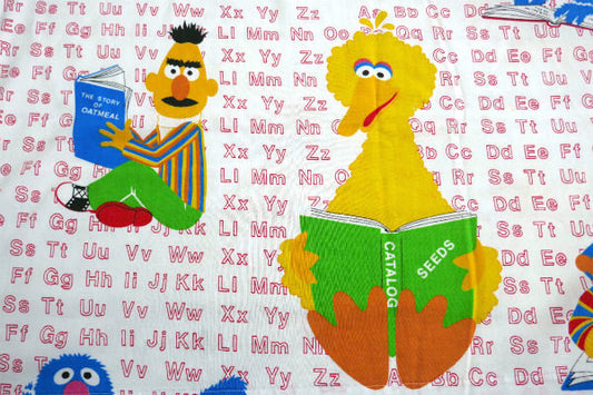 セサミストリートの仲間たち アルファベット&読書柄・ビンテージ・ユーズドシーツ ボックスタイプ US