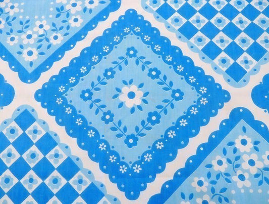 レトロな花柄・パッチワーク柄・レース付き・ヴィンテージ・USEDフラットシーツ