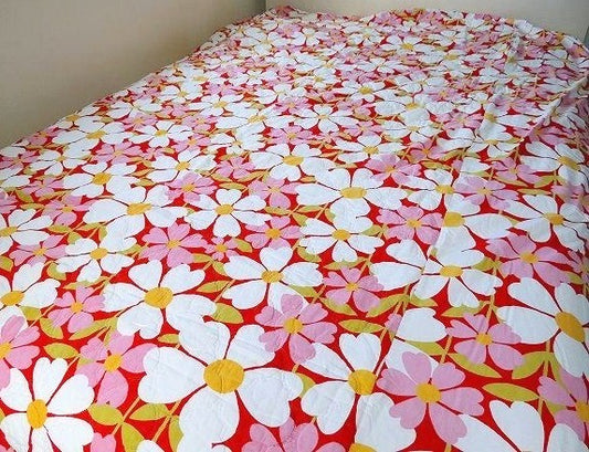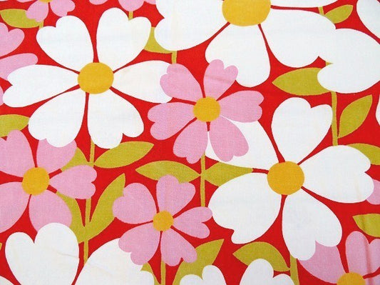 赤色のカラフルポップな花柄・ヴィンテージ・USEDフラットシーツ/ファブリック USA
