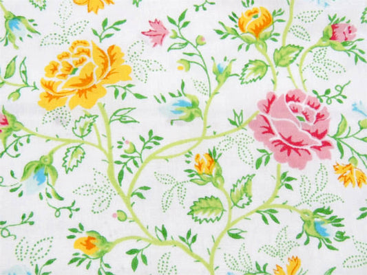 【Pacific】クリームイエロー・花柄・ヴィンテージ・USEDフラットシーツ(1/2) USA