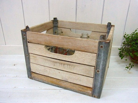 牛乳会社の木製アンティーク・ミルクケース/ミルクボックス/木箱 USA