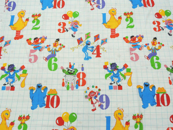 【セサミストリートの仲間たち】USA製・数字柄・ヴィンテージ・ユーズドシーツ(フラットタイプ)
