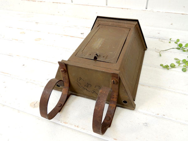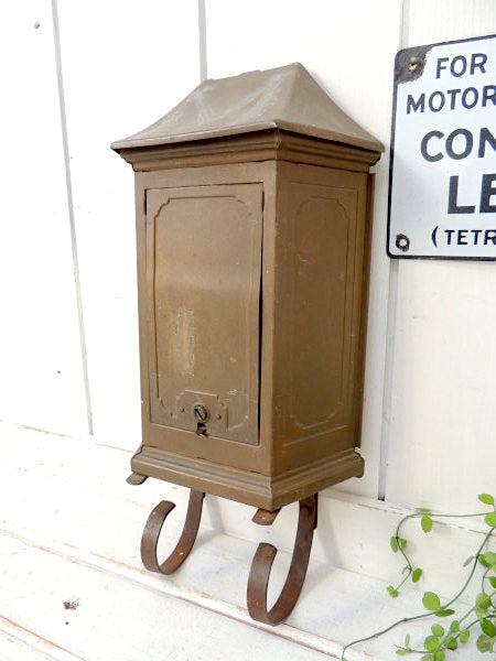 アメリカ西海岸・カリフォルニアで見つけました・・1930年代のゴールド色・ティン製・アンティーク・郵便受け(メールボックス/ポスト)です。