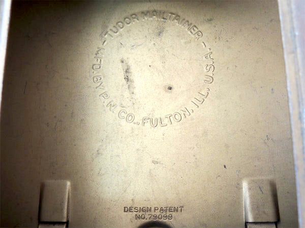 内側に【TUDOR MAILTAINRER-MNFD.BY P.N. CO., FULTON, ILL, U.S.A. DESIGN PATENT No. 79099】とエンボス文字が入っております。