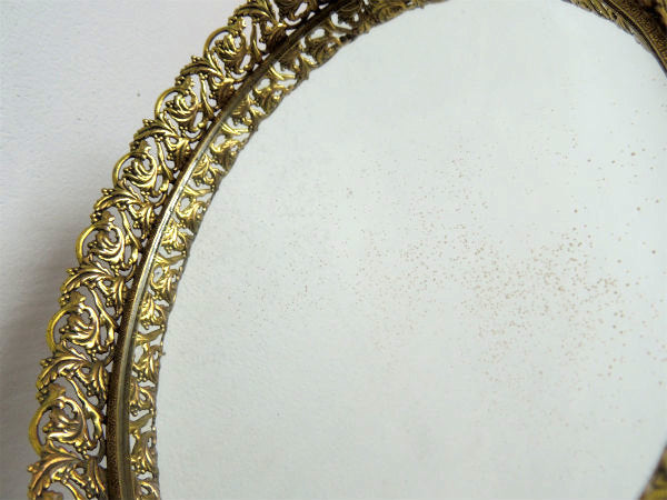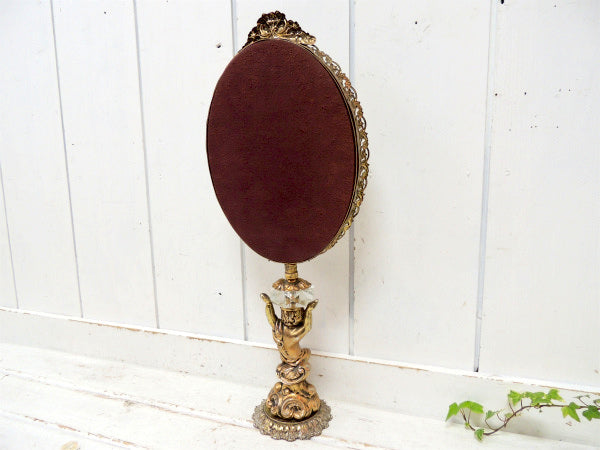 エレガントな天使モチーフ&花柄・アンティーク・スタンドミラー・卓上ミラー USA