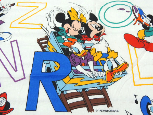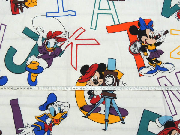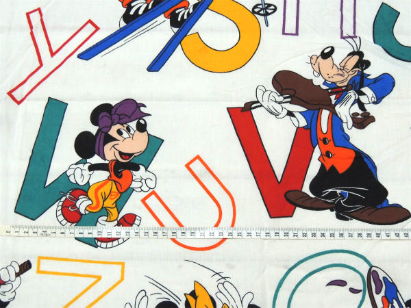 【ミッキー&フレンズ】アルファベット柄・ベビーサイズ・ヴィンテージ・ユーズドシーツ(ボックスタイプ