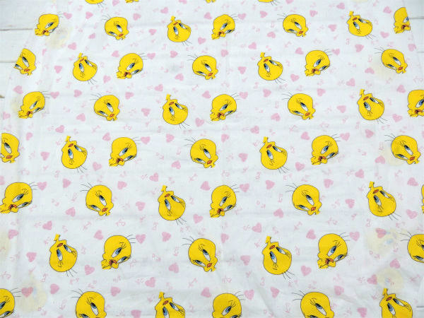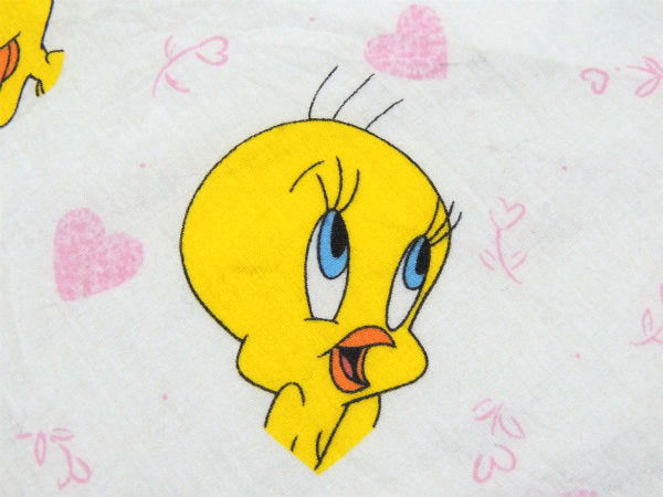【トゥイーティー】ルーニーテューンズ・ハート柄・ベビーサイズ・ユーズドシーツ(ボックスタイプ)