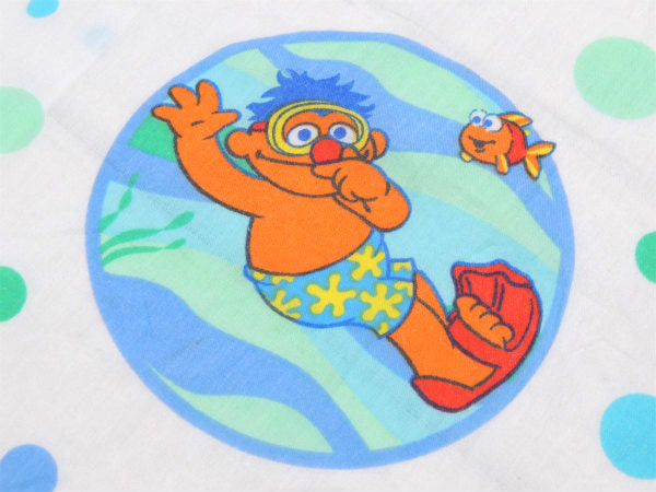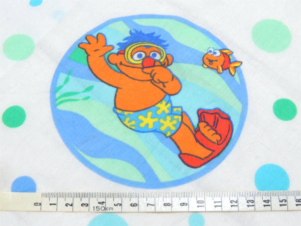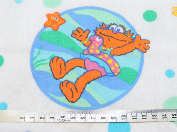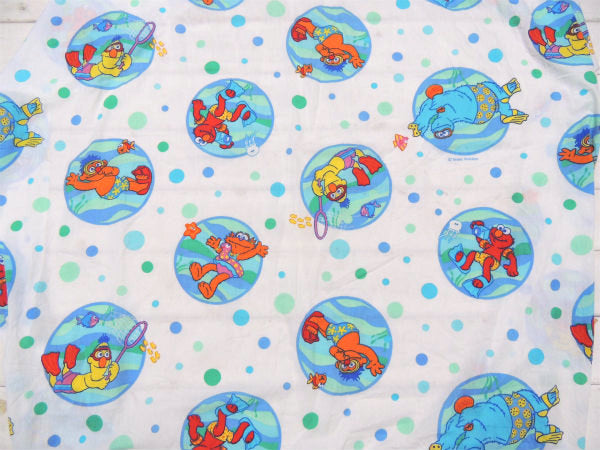 アメリカで見つけました・・『セサミストリートの仲間たち』のマリンレジャー柄・ベビーサイズ・USEDフィットシーツです。