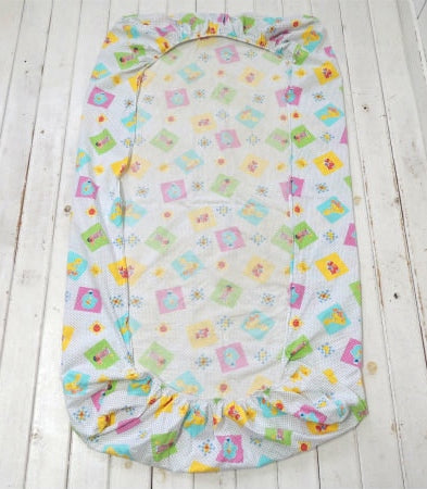 アメリカで見つけました・・『セサミストリートの仲間たち』のドット柄・ベビーサイズ・USEDフィットシーツです。