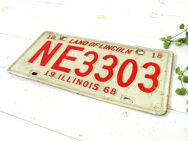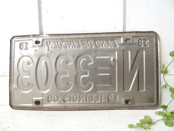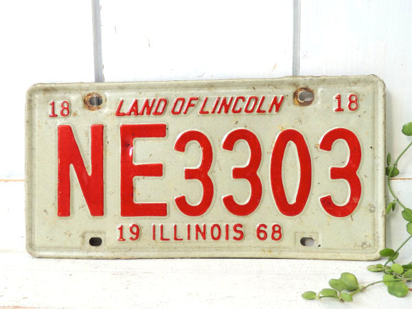 アメリカ・イリノイ州のナンバー"1968年・ILLINOIS" ヴィンテージ・ナンバープレート(カーライセンスプレート)です。