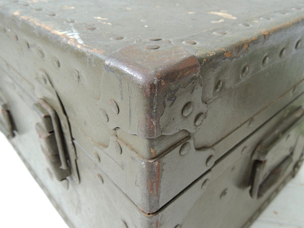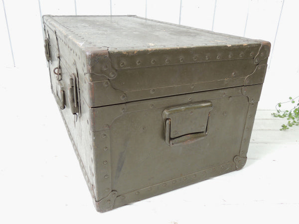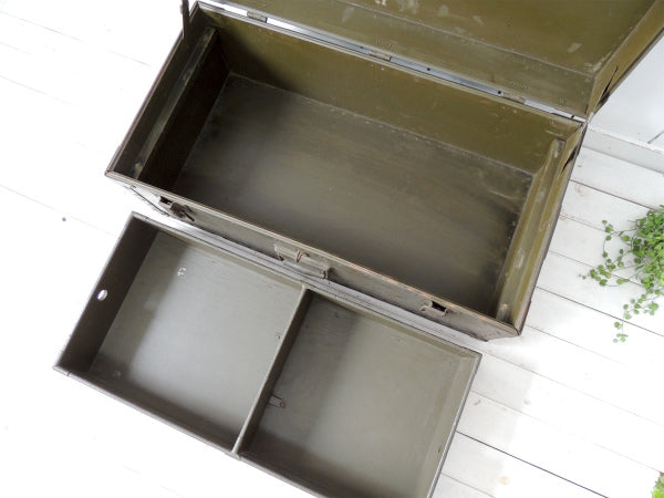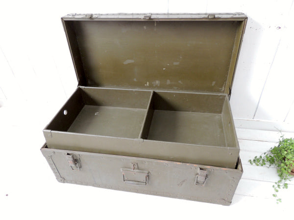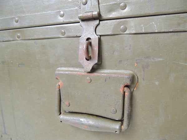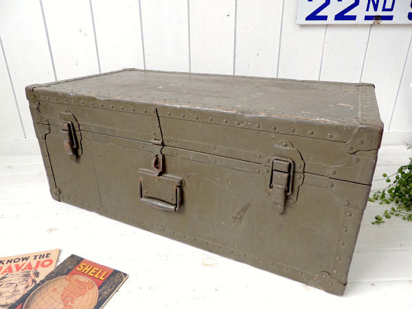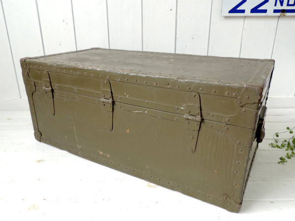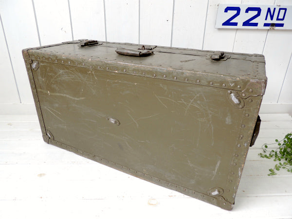 1947s カーキ色・2段式・大きなアンティーク・木製トランク/ウッドボックス・ミリタリー