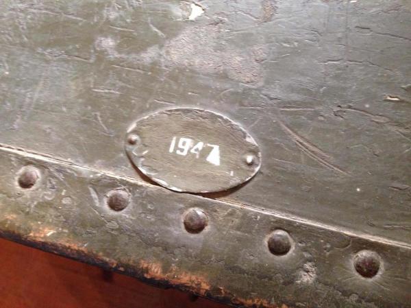 アメリカ西海岸・カリフォルニアで見つけました・・1947年・2段式の大きなアンティーク・木製トランクです。