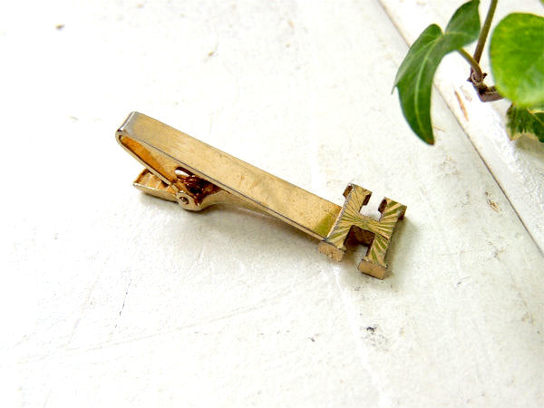アメリカで見つけました・・・ヴィンテージ・'H”イニシャルモチーフ&カットデザイン・お洒落なタイピン(タイクリップ)です。